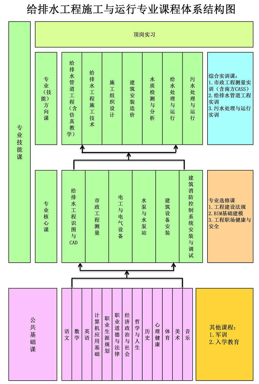 专业技术能力是指学生通过两年的在校学习,具备给排水工程施工与运行专业相关理论基础知识,具有运用所学知识和技术解决专业实际问题的能力。